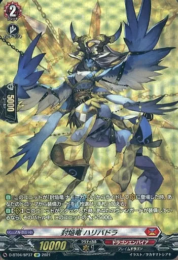 Japanese title: ヴァンガード/SP/ドラゴンエンパイア/overDress ブースターパック第4弾 「覚醒する天輪」 D-BT04/SP37[SP]:封焔竜 ハリバドラ