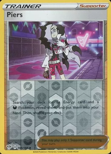Japanese title: ポケモンカードゲーム/◆(U)/サポート/英語版/Sword & Shield-Darkness Ablaze 165/189[◆(U)]:(リバースホロ)Piers/ネズ