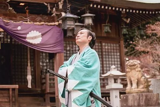 Takeshi Aoki / Horizontal type, postcard size / Blue Shuttle Produced "Shinsengumi" KUJI Photo 3 Light blue KUJI Photo