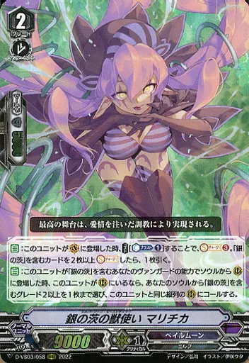 Japanese title: ヴァンガード/RRR/Vスペシャルシリーズ第3弾「Vクランコレクション Vol.3」 D-VS03/058[RRR]:銀の茨の獣使い マリチカ