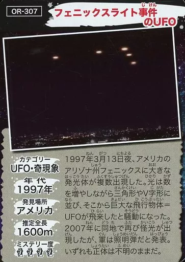 Classification : UFO and odd phenomena This item is only a trading card (single). Other items are not included.