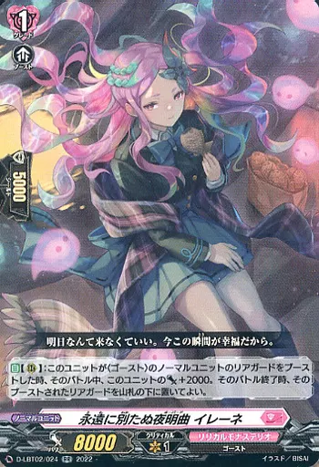 Japanese title: ヴァンガード/RR/リリカルモナステリオ/overDress リリカルブースター第2弾 「リリカルモナステリオ ~新学期はじまるよ!~」 D-LBT02/024[RR]:永遠に別たぬ夜明曲 イレーネ