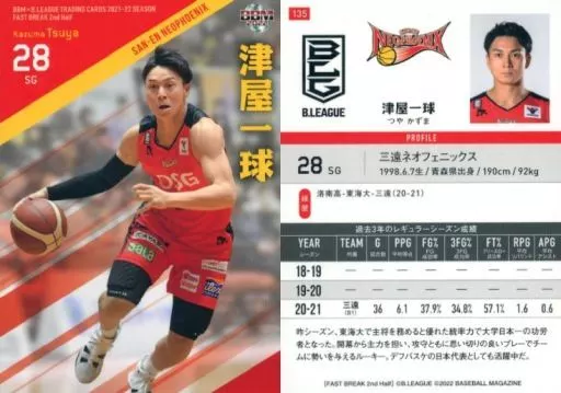 BBM / Regular Card / BBM×B. LEAGUE TRADING CARDS 2021-2022 SEASON FAST BREAK 2nd Half 135 [Regular Card] : Tsuya Ippyu