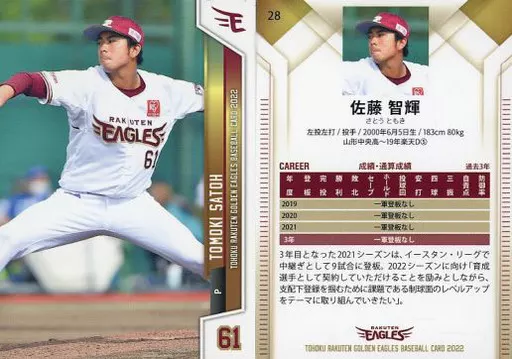 Sports / Regular Card / Tohoku Rakuten Golden Eagles Baseball Card 2022 1 st version 28 [Regular Card] : Tomoteru Satō