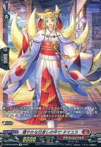 Japanese title: ヴァンガード/SP/ドラゴンエンパイア/overDress ブースターパック第5弾 「群雄凱旋」 D-BT05/SP25[SP]:穏やかな日差しの中で タマユラ