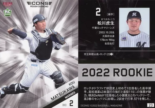 Japanese title: BBM/レギュラーカード/BBM2022 ベースボールカードセット ICONS -ROUGH DIAMOND- 23[レギュラーカード]:松川虎生