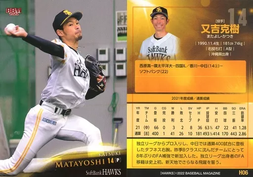 BBM / Regular Card / BBM2022 Fukuoka Soft Bank Hawks H06 [Regular Card] : Katsuki Matayoshi