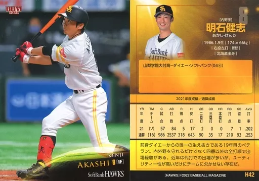 Japanese title: BBM/レギュラーカード/BBM2022 福岡ソフトバンクホークス H42[レギュラーカード]:明石健志
