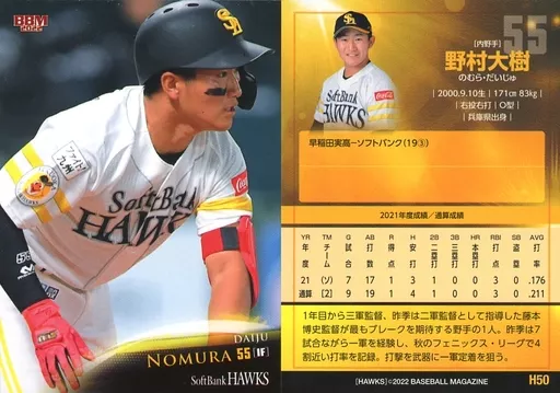 Japanese title: BBM/レギュラーカード/BBM2022 福岡ソフトバンクホークス H50[レギュラーカード]:野村大樹
