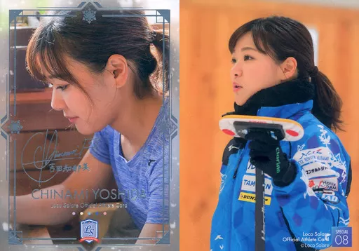 Japanese title: スポーツ/スペシャルカード/「ロコ・ソラーレ~軌跡~ ライトVer.」オフィシャル・アスリートカード SP08[スペシャルカード]:吉田知那美(銀箔押しサイン入り)