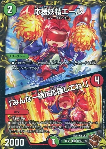 Japanese title: デュエルマスターズ/U/自然/火/[DMRP-21]王来MAX第1弾 鬼ヤバ逆襲S-MAX!! TF15/TF20[U]:応援妖精エール/「みんな一緒に応援してね!」