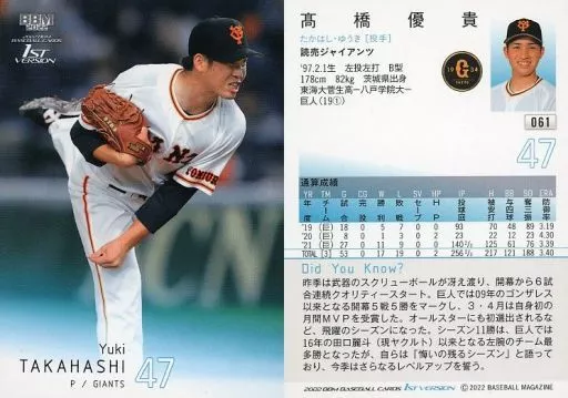 BBM / Regular Card / BBM2022 Baseball Card 1 st Version 061 [Regular Card] : Yuki Takahashi