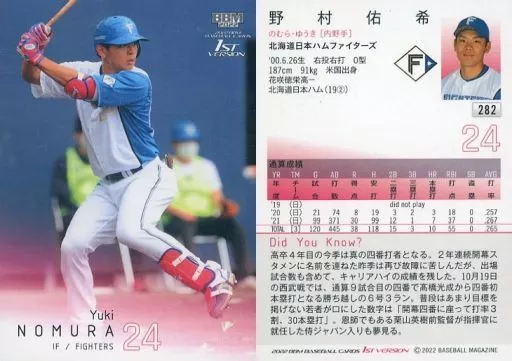 Japanese title: BBM/レギュラーカード/BBM2022 ベースボールカード 1stバージョン 282[レギュラーカード]:野村佑希