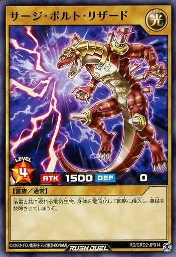 Japanese title: 遊戯王ラッシュデュエル/N/通常モンスター/ゴーラッシュデッキ ジョインテック・アタック RD/GRD2-JP014[N]:サージ・ボルト・リザード
