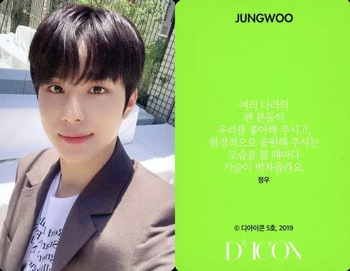 Collection Card (Male) / "Dicon PHOTOCARD101 NCT127" Photo Card NCT127 / Kim Jungwoo (JUNGWOO) / Back Light Green / With Korean Message / "Dicon PHOTOCARD101 NCT127" Photo Card
