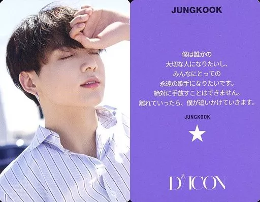 Collection Card (Male) / "Dicon PHOTOCARD101 bts" Photo Card BTS / JUNGKOOK / Purple on the back with Japanese messages / "JAPAN EDITION" / "Dicon PHOTOCARD101 BTS" photo card