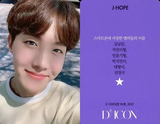 BTS / J-HOPE / purple on the back with Korean message / "Dicon PHOTOCARD101 BTS" photo card