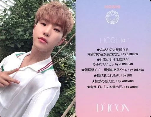 Collection Card (Male) / "Diicon PHOTOCARD101 Seventeen" Photo Card SEVENTEEN/HOSHI / with pink and 英語 messages on the back / "JAPAN EDITION" / "Dicon PHOTOCARD101 SEVENTEEN" photo card