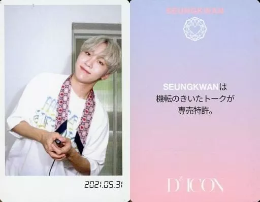 Collection Card (Male) / "Diicon PHOTOCARD101 Seventeen" Photo Card SEVENTEEN/SEUNGKWAN (Boo Seung-kwan) / Back side pink with Japanese message / "JAPAN EDITION" / "Dicon PHOTOCARD101 SEVENTEEN" photo card