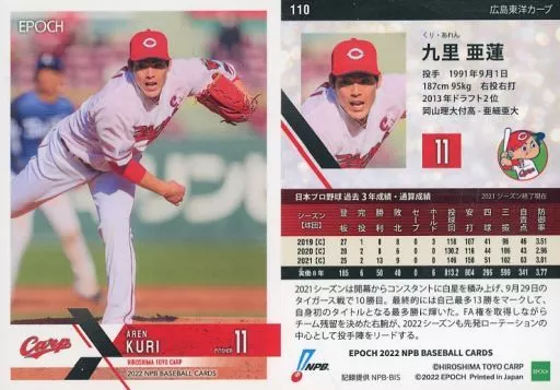 Japanese title: スポーツ/レギュラーカード/EPOCH 2022 NPB プロ野球カード 110[レギュラーカード]:九里亜蓮