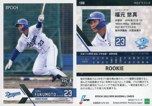 Sports / Regular Card / EPOCH 2022 NPB Professional Baseball Card 180 [Regular Card] : Yūma Fukumoto