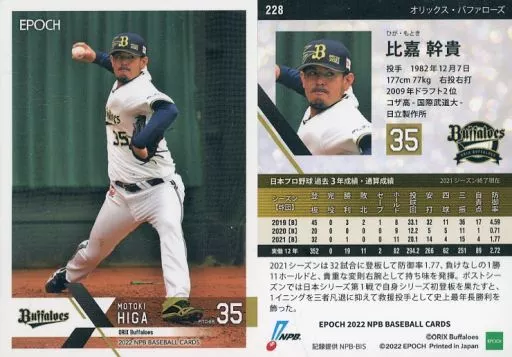 Japanese title: スポーツ/レギュラーカード/EPOCH 2022 NPB プロ野球カード 228[レギュラーカード]:比嘉幹貴