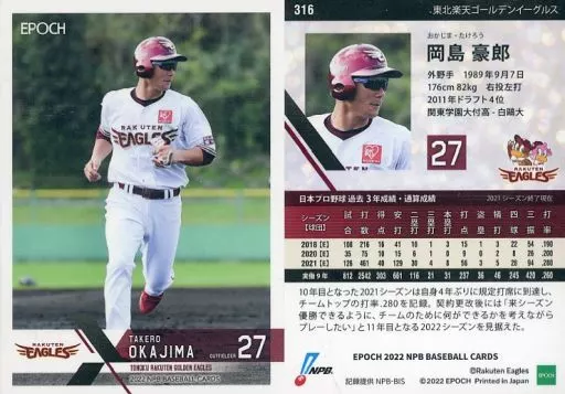 Japanese title: スポーツ/レギュラーカード/EPOCH 2022 NPB プロ野球カード 316[レギュラーカード]:岡島豪郎