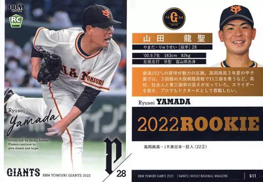 Japanese title: BBM/レギュラーカード/BBM2022 読売ジャイアンツ G11[レギュラーカード]:山田龍聖