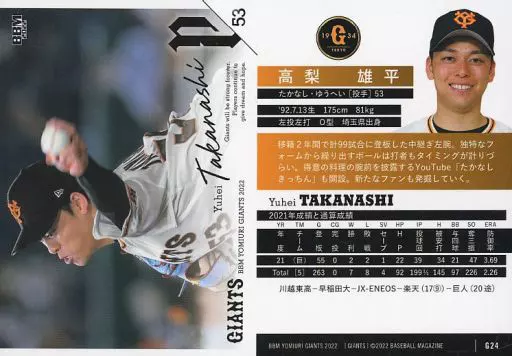 Japanese title: BBM/レギュラーカード/BBM2022 読売ジャイアンツ G24[レギュラーカード]:高梨雄平