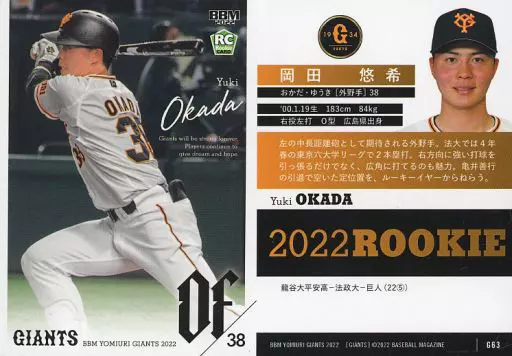 Japanese title: BBM/レギュラーカード/BBM2022 読売ジャイアンツ G63[レギュラーカード]:岡田悠希