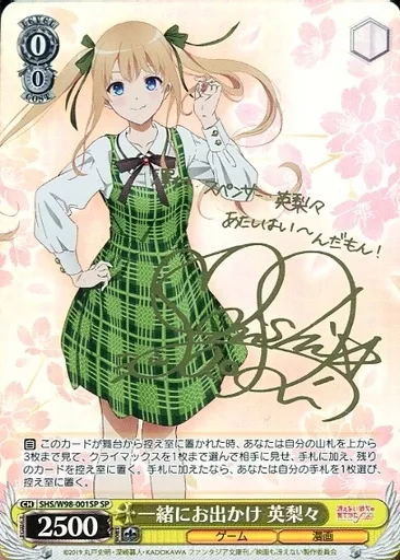 Japanese title: ヴァイスシュヴァルツ/SP/キャラ/ブースターパック 冴えない彼女の育てかた Fine SHS/W98-001SP[SP]:(ホロ)一緒にお出かけ 英梨々(大西沙織金箔押しサイン入り)