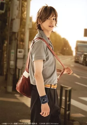 Japanese title: 生写真(男性)/俳優 杉江大志(三田睦)/膝上・キャラクターショット/本能バースト演劇「sweet pool」ブロマイド
