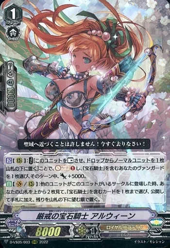 Japanese title: ヴァンガード/RRR/ノーマルユニット/Vスペシャルシリーズ第5弾「Vクランコレクション Vol.5」 D-VS05/003[RRR]:厳戒の宝石騎士 アルウィーン