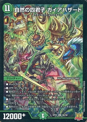 Japanese title: デュエルマスターズ/SR/自然/[DMRP-22]王来MAX最終弾 切札!マスターCRYMAX!! S8/S8[SR]:自然の四君子 ガイアハザード