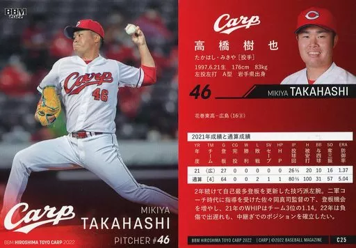 BBM / Regular Card / BBM Hiroshima Toyo Carp Baseball Card 2022 C25 [Regular Card] : Mikiya Takahashi