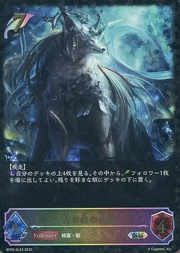 Japanese title: シャドウバース エボルヴ/SL/フォロワー/ブースターパック第2弾「黒銀のバハムート」 BP02-SL03[SL]:古き森の白狼