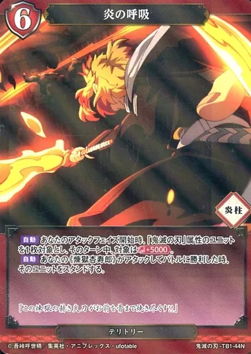 Japanese title: ビルディバイド/N/赤/タイアップブブースター「鬼滅の刃」 鬼滅の刃-TB1-44N[N]:炎の呼吸/煉獄杏寿郎(パラレル)