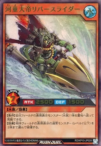 Japanese title: 遊戯王ラッシュデュエル/UR/効果モンスター/デッキ改造パック 破滅のレクイエム!! RD/KP10-JP028[UR]:河童大帝リバースライダー