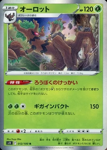 Japanese title: ポケモンカードゲーム/R/草/ソード&シールド 拡張パック ロストアビス 012/100[R]:(キラ)オーロット