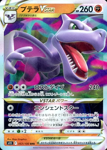 Japanese title: ポケモンカードゲーム/RRR/闘/ソード&シールド 拡張パック ロストアビス 057/100[RRR]:(キラ)プテラVSTAR