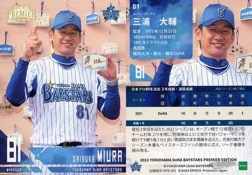 Sports / Regular Card / 2022 Yokohama DeNA BayStars PREMIER EDITION Baseball Card 01 [Regular Card] : Daisuke Miura