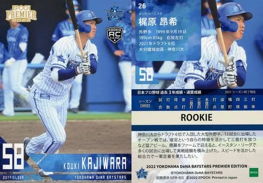 Japanese title: スポーツ/レギュラーカード/2022 横浜DeNAベイスターズ PREMIER EDITION ベースボールカード 26[レギュラーカード]:梶原昂希