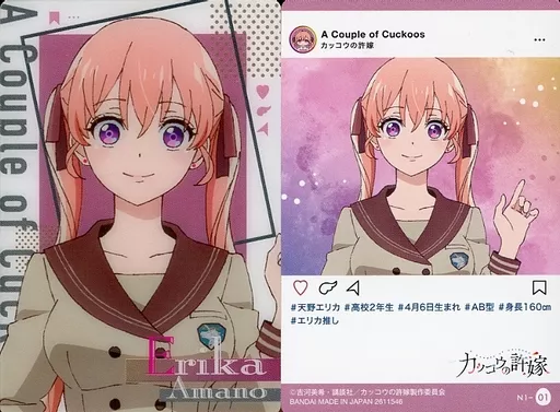 Japanese title: アニメ系トレカ/N/カッコウの許嫁 ウエハース[2611546] N1-01[N]:天野エリカ