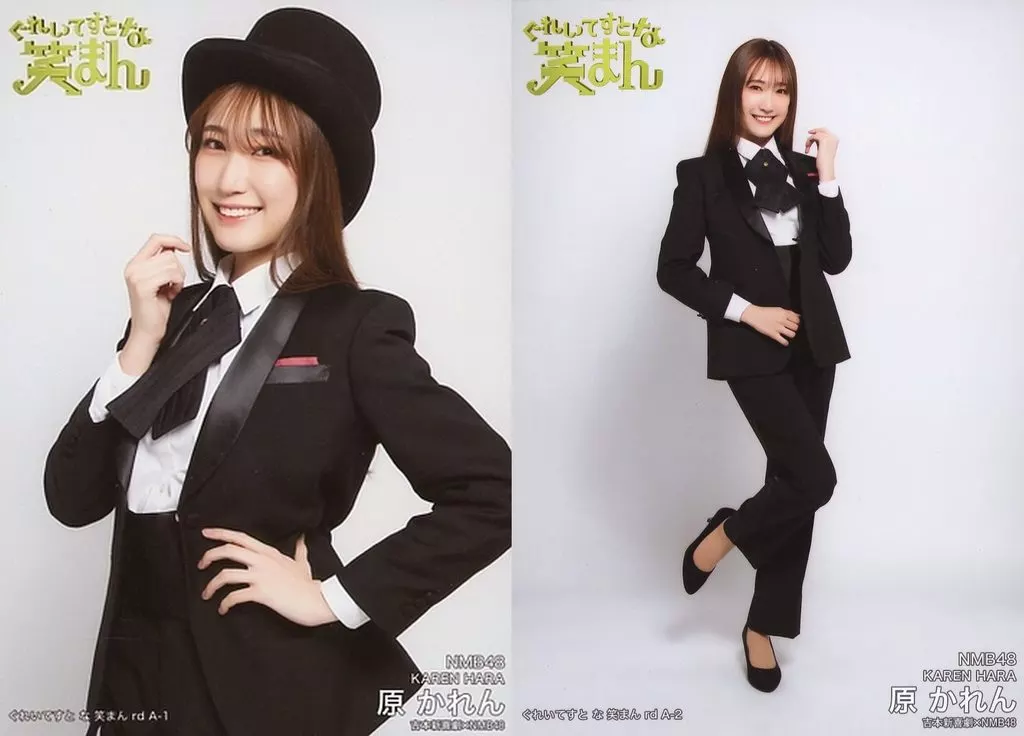 Japanese title: 生写真(AKB48・SKE48)/アイドル/NMB48 ◇原かれん/吉本新喜劇×NMB48 ぐれいてすと な 笑まん ランダム生写真 Type-A タキシード衣装 2種コンプリートセット