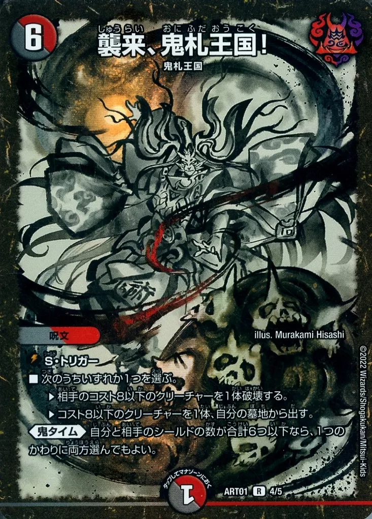 Japanese title: デュエルマスターズ/R/多色/[DMART-01]神アート 鬼札覇王絵巻 4/5[R]:襲来、鬼札王国!(パック開封済)