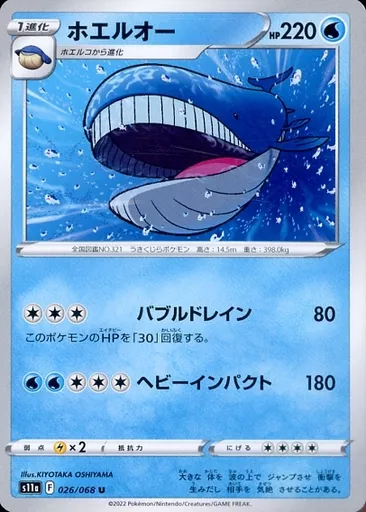 Japanese title: ポケモンカードゲーム/U/水/ソード&シールド 強化拡張パック 白熱のアルカナ 026/068[U]:ホエルオー