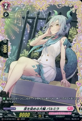 Japanese title: ヴァンガード/FR/リリカルモナステリオ/overDress リリカルブースター第3弾 「リリカルモナステリオ ~なつのおもいでっ!~」 D-LBT03/FR11[FR]:夜を染める大輪 パルミラ