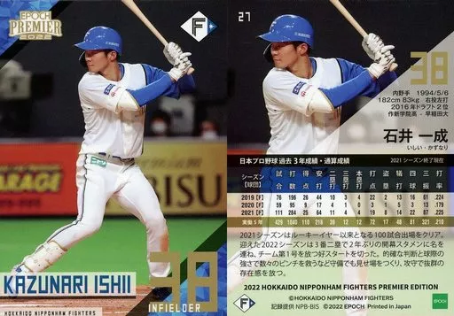 Japanese title: スポーツ/レギュラーカード/2022 北海道日本ハムファイターズ PREMIER EDITION with MEMORABILIA 27[レギュラーカード]:石井一成