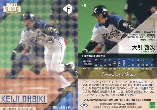 Japanese title: スポーツ/レギュラーカード/2022 北海道日本ハムファイターズ PREMIER EDITION with MEMORABILIA 43[レギュラーカード]:大引啓次(ホログラム版)