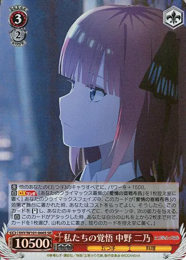 Japanese title: ヴァイスシュヴァルツ/SR/キャラ/ブースターパック 映画「五等分の花嫁」 5HY/W101-066S[SR]:(ホロ)私たちの覚悟 中野 二乃
